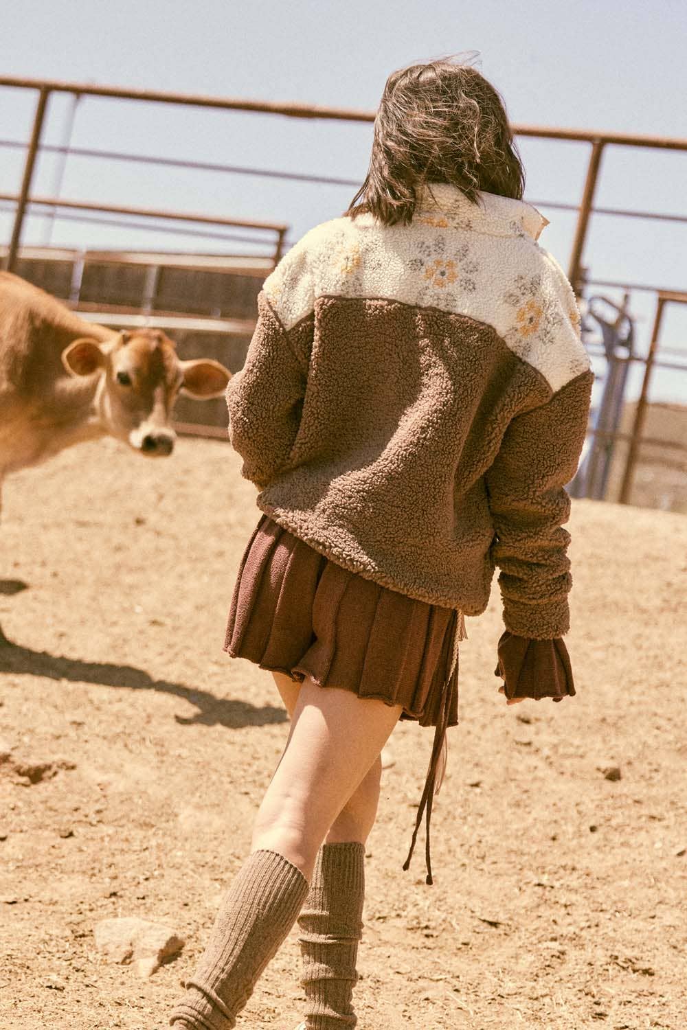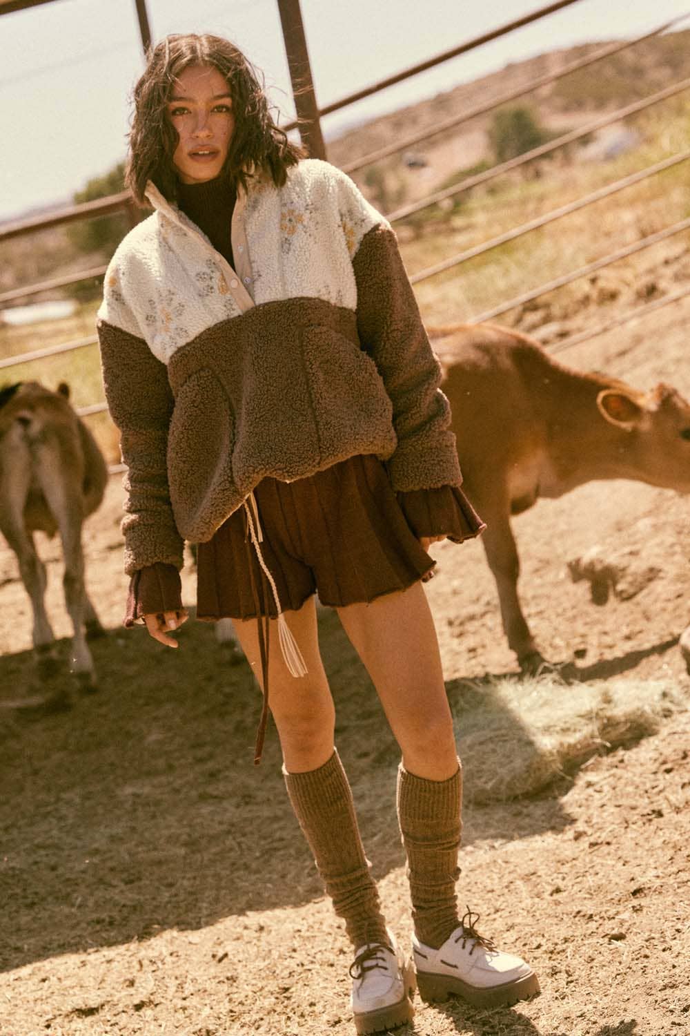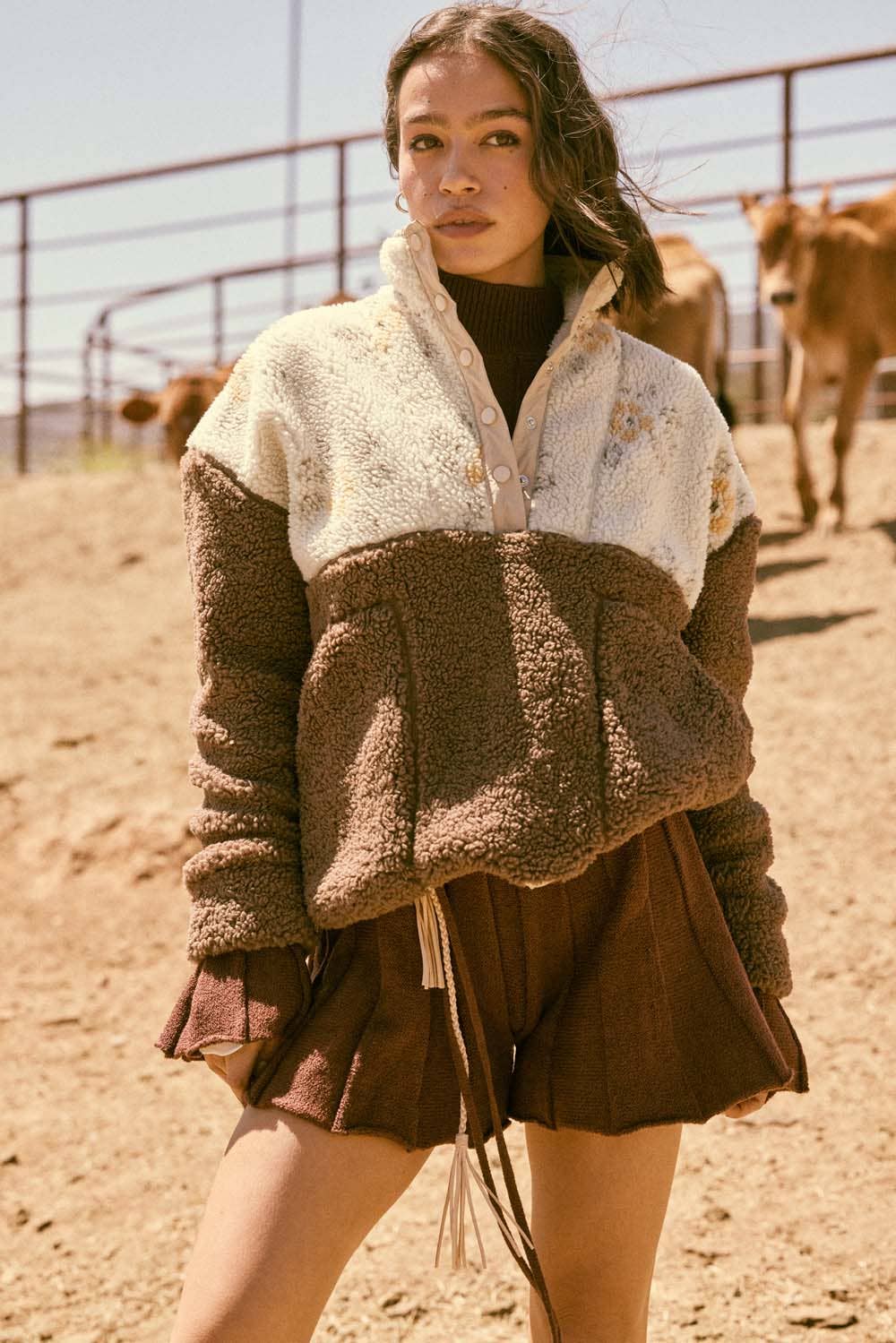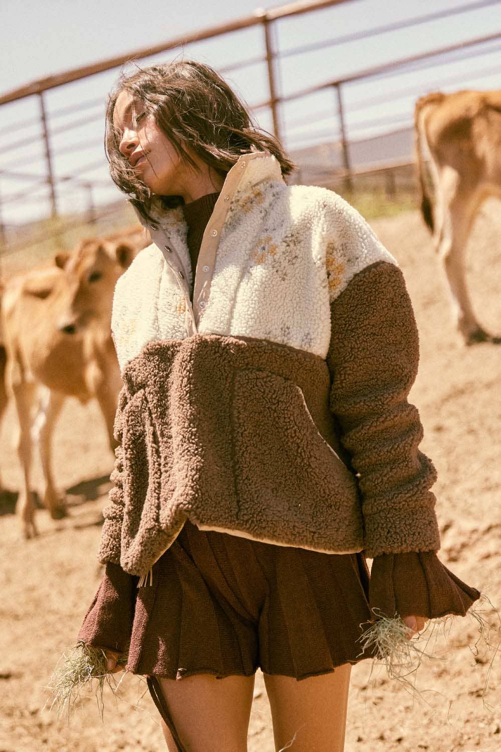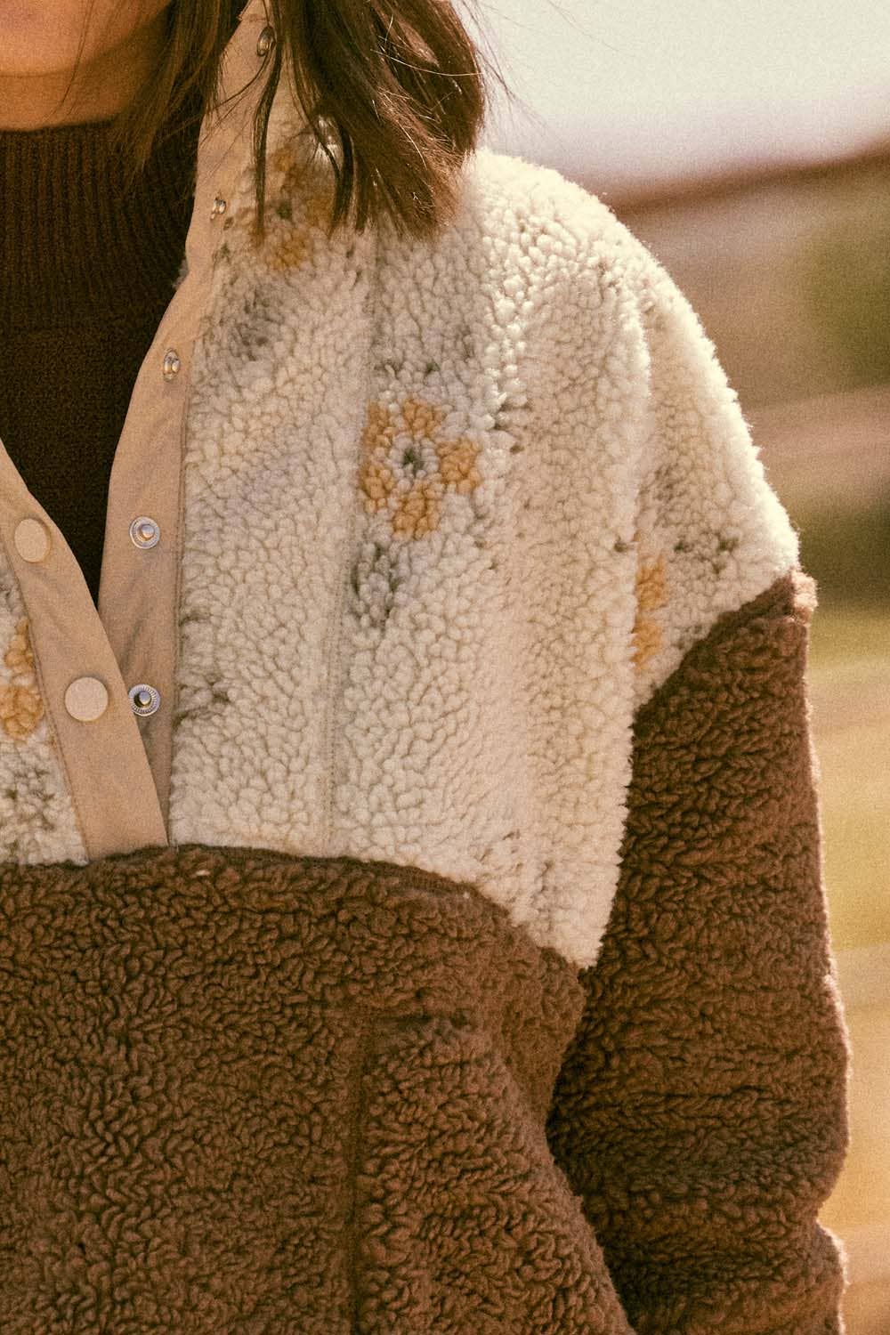 A sherpa fleece pullover jacket.