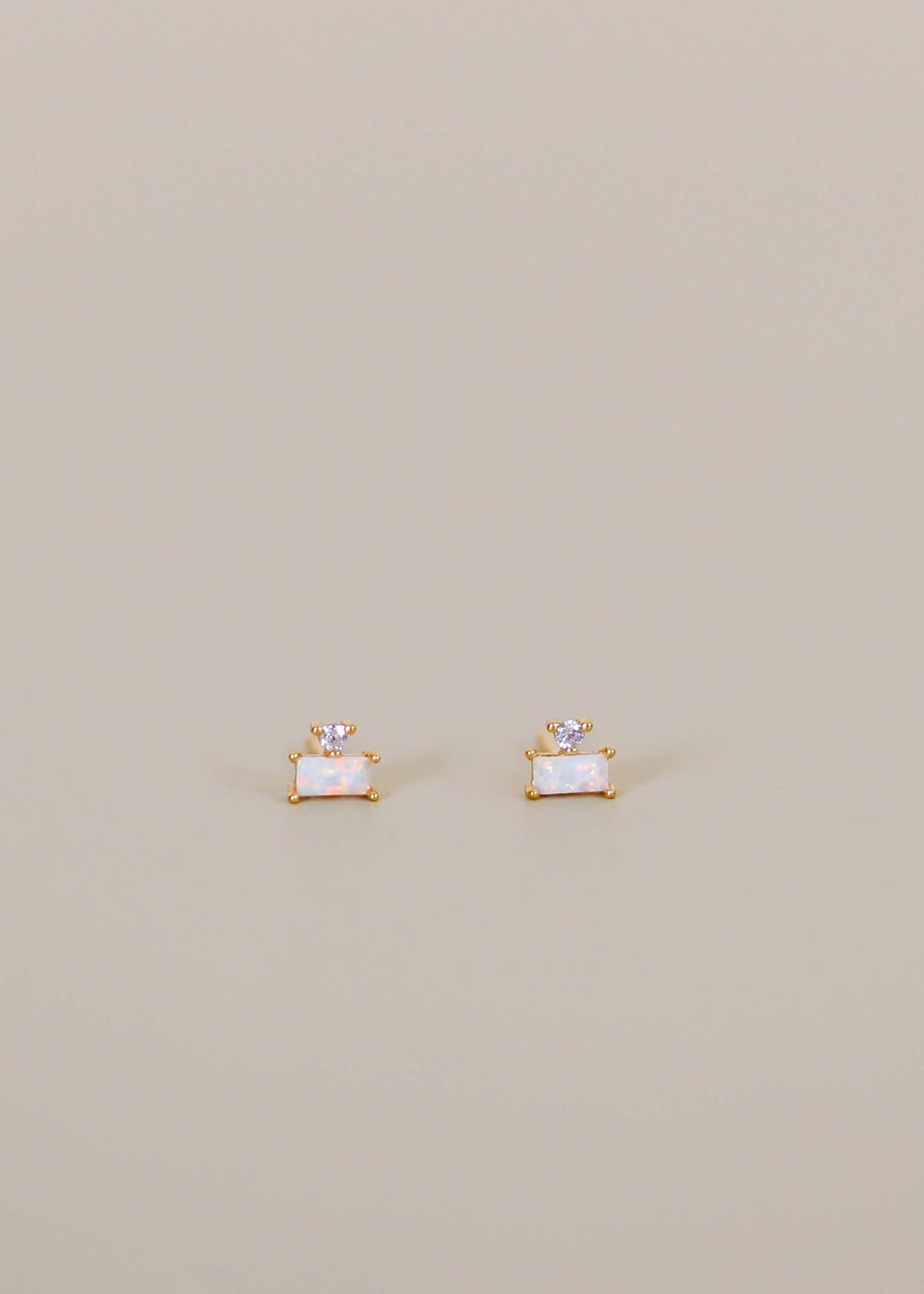 Double Stud Stack Gold Earrings in Opal White by JaxKelly