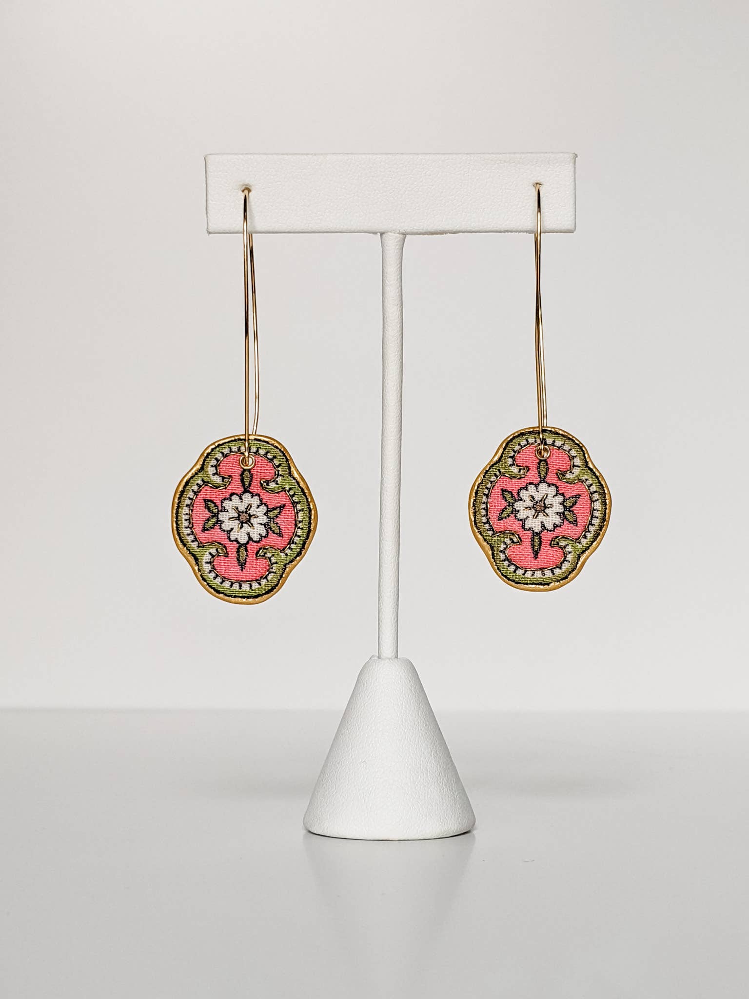 The Jackie Drop Earring was made using vintage fabric from an estate sale in San Antonio, TX.